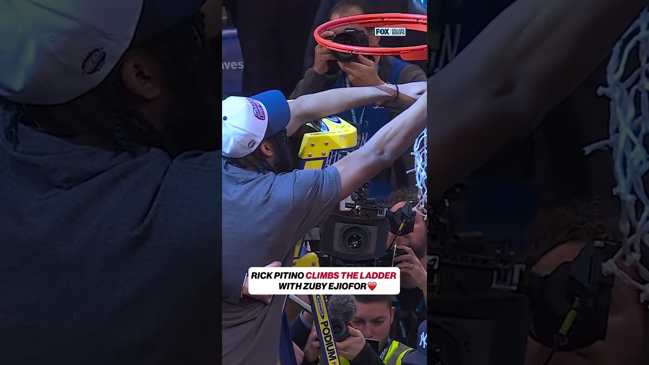Rick Pitino & Zuby Ejiofor climb the ladder 🏆 #basketball #championship #cbb #stjohns